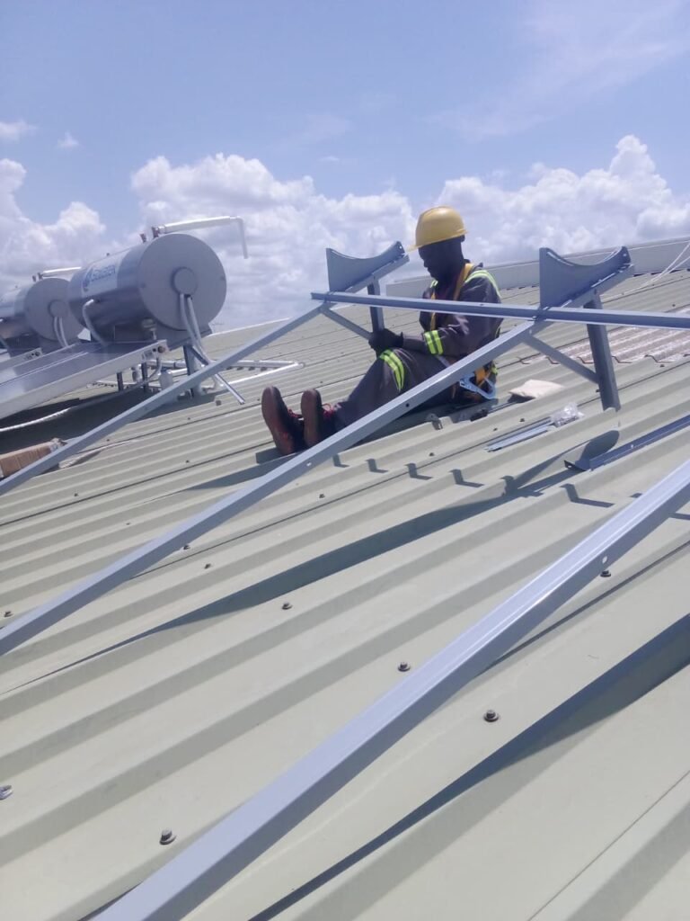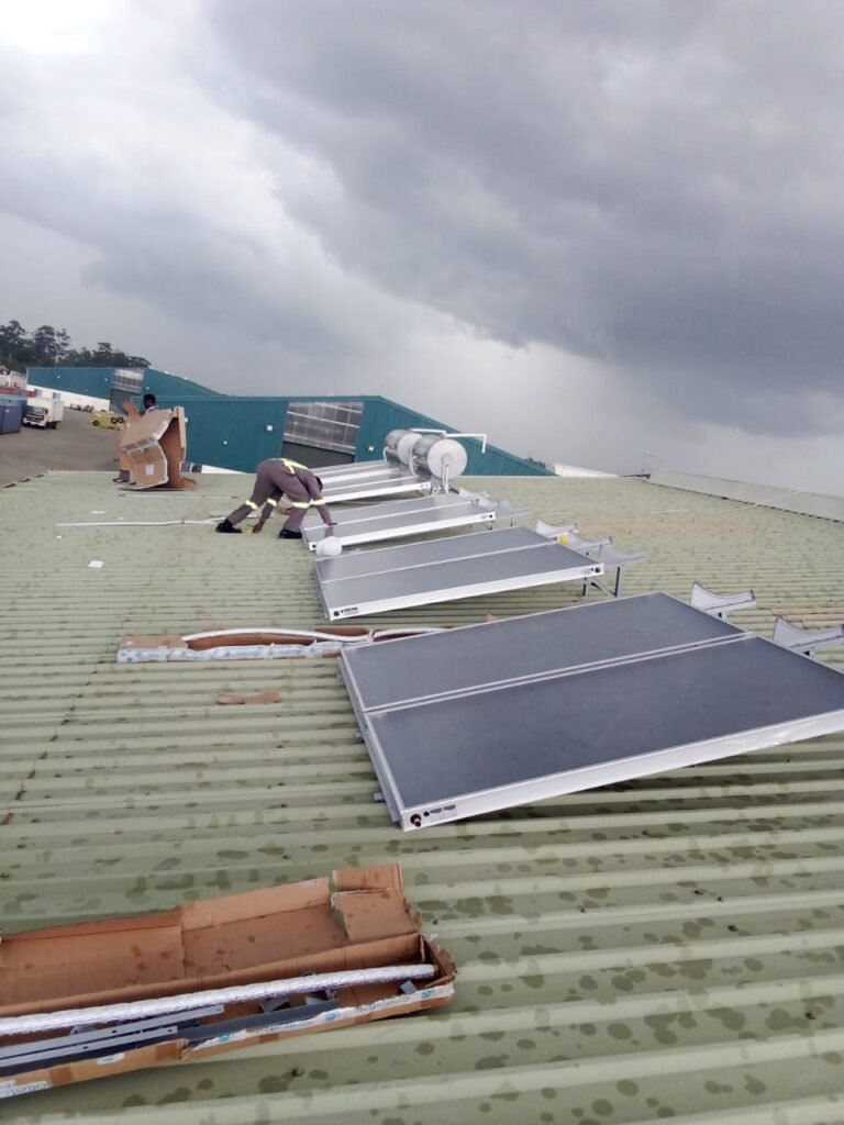 About the project Date: August 2025 Client: Defence Forces of Kenya- Nanyuki Barracks Category: Solar Projects Address: Nanyuki Project Information Supply and installation of ten 300L pressurized indirect solar water heaters. Scope of Work Supply, install and commission 10 units of 300 Litres indirect pressurized solar water heaters Solution Delivered Durable solar hot-water systems designed for high-demand usage. Project Impact Reduced fuel/electricity costs Improved efficiency Sustainable hot-water solution Gallery Post navigation Previous PortfolioHybrid Solar System for Variety Flooring Works Limited Next PortfolioSolar Hybrid System with Lithium Batteries Storage at Bro. Andre Hospital – Dandora